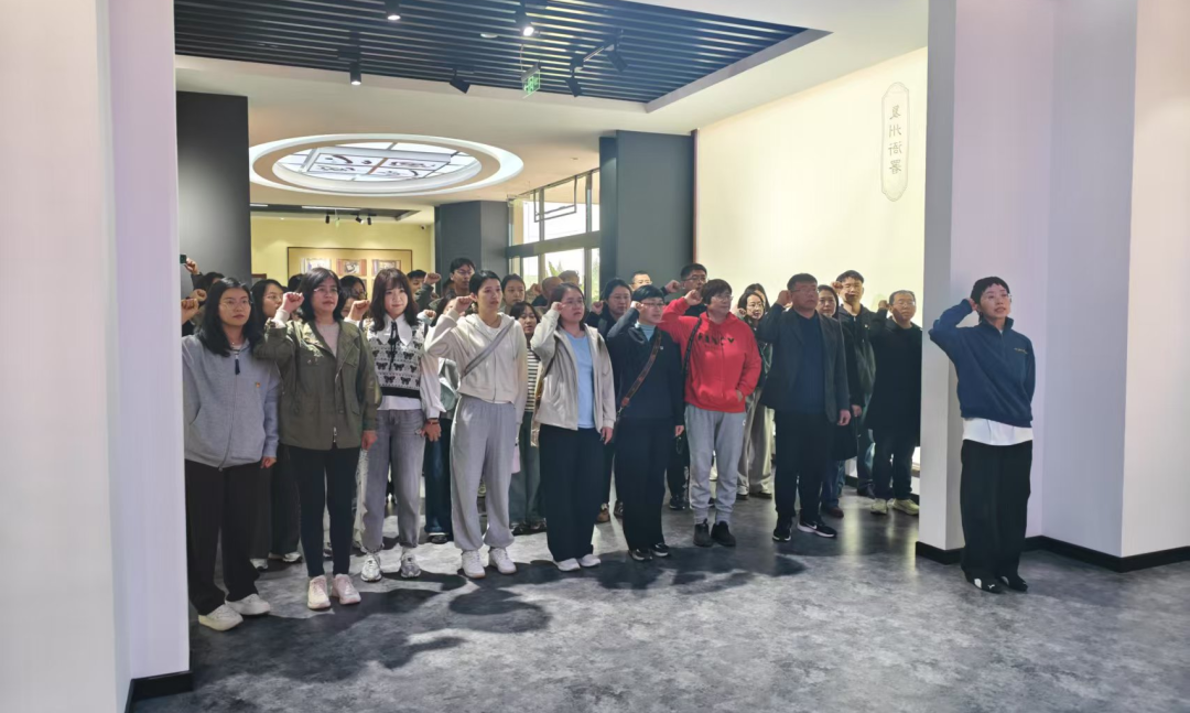 在“家廉国兴”廉洁文化教育基地,以家风文化为主题的1054平方米展馆化身沉浸式课堂。活动伊始,全体党员面向鲜红党旗,高举右拳,重温入党誓词。铿锵有力的誓言在展馆内回荡,不仅是对入党初心的回望,更是对廉洁自律的庄严承诺。