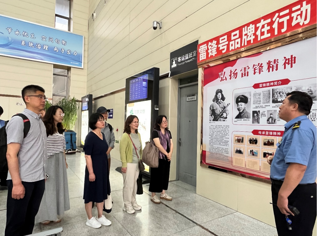 在营口东站雷锋精神党建品牌阵地,党支部书记饱含深情的讲解,让那些珍贵的图片、实物和文字记录瞬间鲜活起来。他不仅讲述了雷锋同志“把有限的生命投入到无限的为人民服务之中去”的崇高境界,更深刻阐释了雷锋精神如何在新时代高铁人的日常工作中落地生根。鲅鱼圈站党支部用视频展示了其党建工作的生动实践与创新成果,其特色活动以及如何将党建优势转化为安全高效运营动能的宝贵经验,如同一本鲜活的基层党建教科书。与营口东站站长的座谈交流中,一个个服务旅客的温情故事、一次次应对突发状况的沉着处置,生动诠释了“人民铁路为人民”的宗旨如何在具体工作中践行,让我们近距离感受到一线高铁人攻坚克难、保障畅通的担当与智慧。我们深刻体会到,党建工作的生命力深深植根于实践沃土,基层的创造力和执行力是我们取之不尽的智慧源泉。