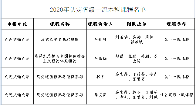 “马克思主义基本原理”“毛泽东思想和中国特色社会主义理论体系概论”“思想道德修养与法律基础”“思想道德修养与法律基础社会实践”共4门课程认定为2020年省级一流本科课程。