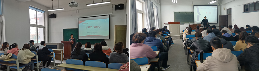 教师以“学党史,做时代新人”为主题,为本科生和研究生讲授2021年春季学期“开学第一课”。