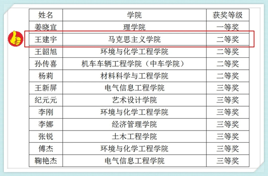 多位参赛青年教师通过竞赛使自己在教学设计、现代教育技术的应用等方面有了不同程度的提高。作为获奖教师,王建宇老师展现出较深的教学功底和良好的专业素养。