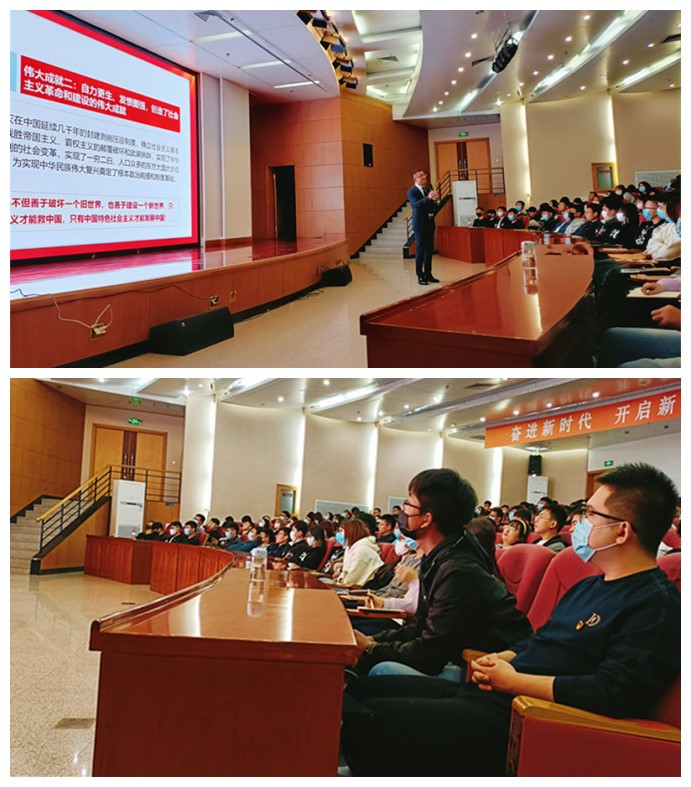 本次党课,王建宇老师以习近平总书记在庆祝中国共产党成立100周年大会上的讲话为主线,回顾了中国共产党百年光辉历程,对习近平总书记在“七一”讲话中提到的“以史为鉴、开创未来,必须牢牢把握的‘九个必须’”做了深入解读。同时,还对“七一”讲话中全面加强党的领导的重要性、坚持和发展马克思主义中国化、什么是中国特色社会主义、加快国防和军队现代化、推进党的建设伟大工程等内容进行了领学,追溯了中国共产党人精神谱系,诠释了建党精神的深刻内涵。