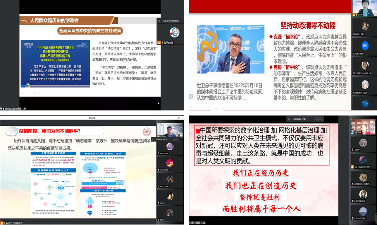 在2022年春季学期授课中,通过开展集体备课,吃透、讲透中央精神,上好疫情防控专题思政课。