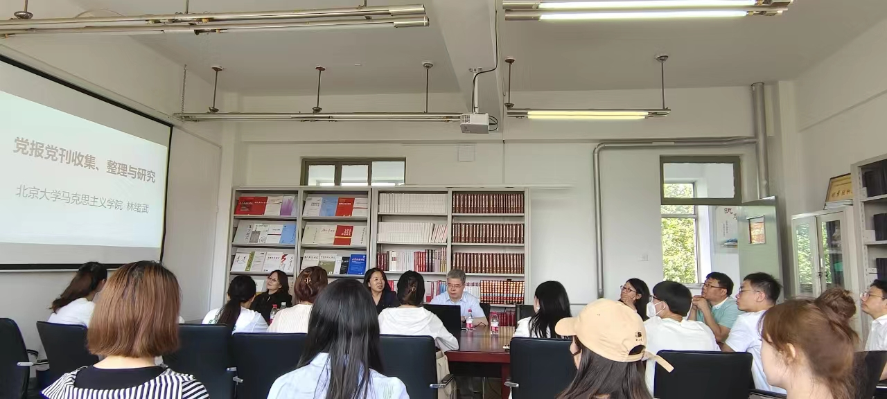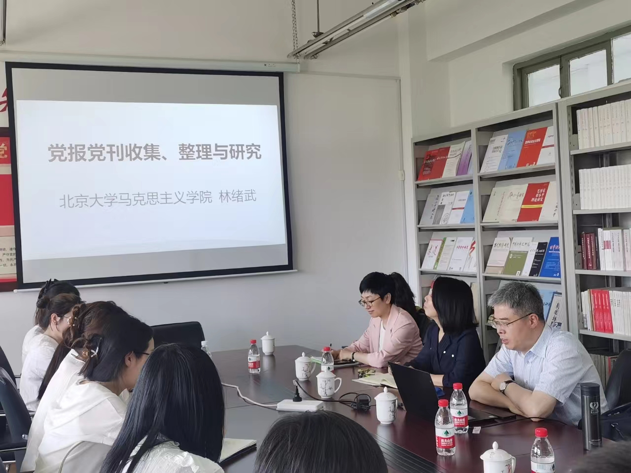 林绪武教授以“党报党刊”为主题,围绕党报党刊发展的百年历程、党报党刊资料整理现状、党报党刊研究的内容与思考三方面进行讲解。