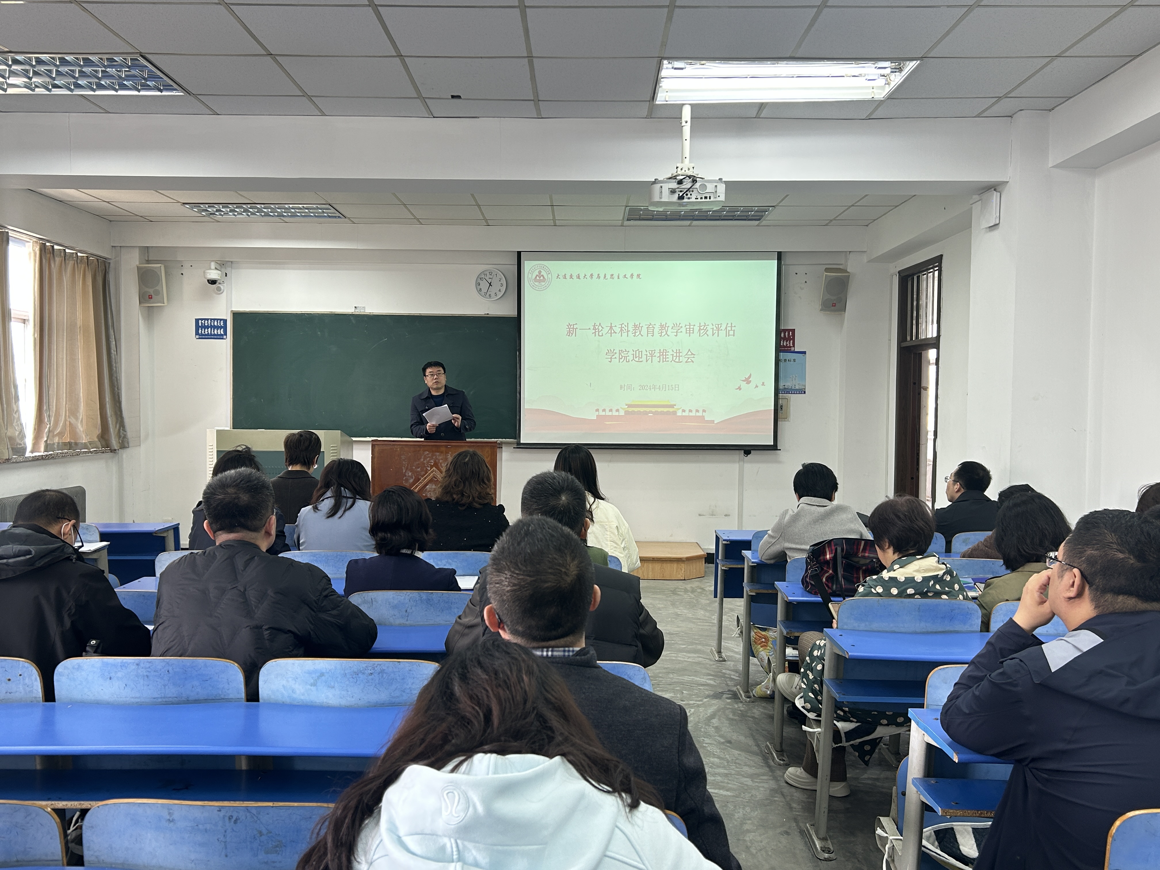 在本部2-311教室召开新一轮本科教育教学审核评估迎评推进会,会议由副院长王世进主持,全院教师参加。