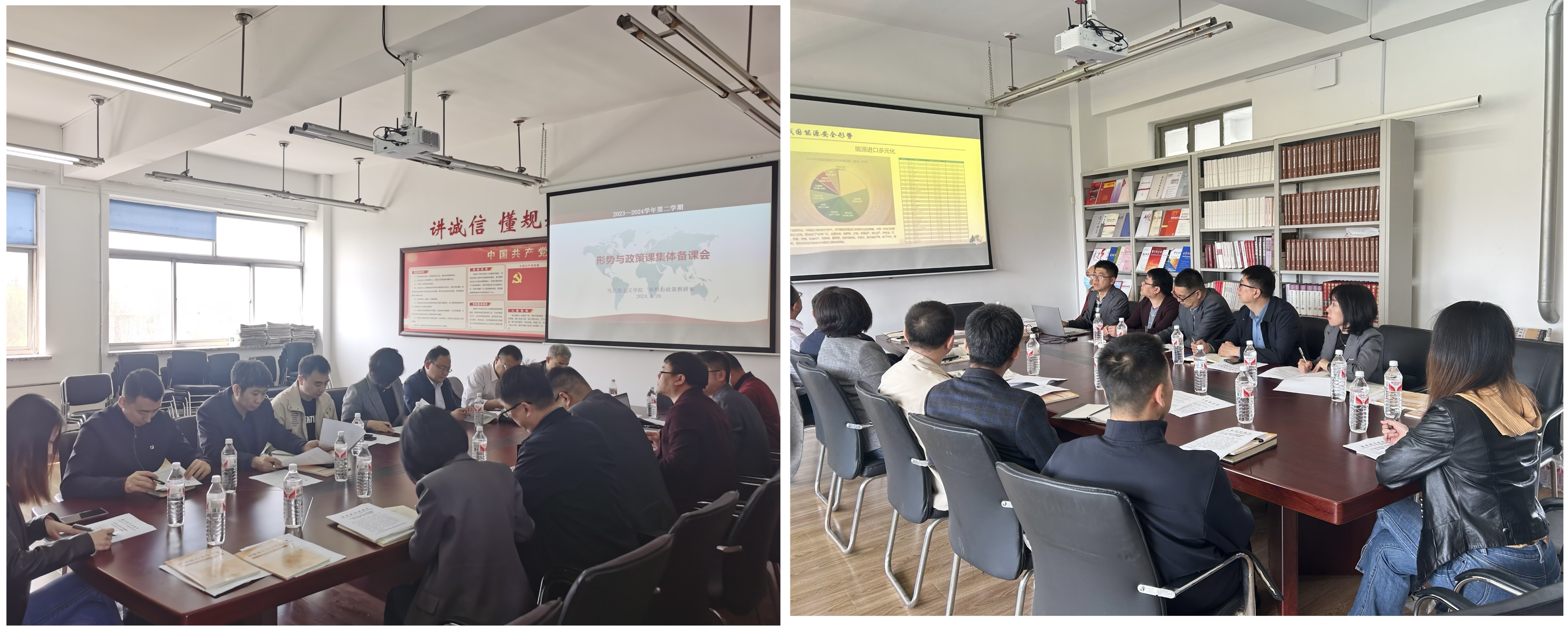 形势与政策课教研室主任赵世平围绕教社科司《关于做好2024年春季学期全国高校“形势与政策”教学工作的通知》等文件精神,就本学期形势与政策课的课程安排等内容进行解读说明,并结合学校审核评估工作要求,明确本次课程教学的重难点。他以《世界变乱交织 中国笃行担当》为题进行了教学展示。随后,与会教师就教学内容、教学安排、授课要求等方面做了深入交流。
