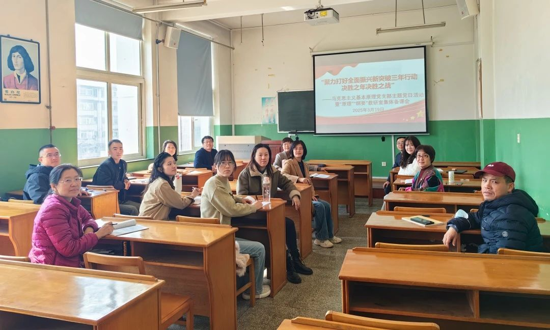 在习近平总书记2025年1月辽宁考察时的重要讲话和重要指示精神指引下,马克思主义基本原理党支部创新打造“党建+”备课模式。3月19日,党支部组织“原理”“纲要”两个教研室共同开展沉浸式集体备课,将政治理论学习与业务能力提升深度融合,为激活思政课堂群策群力。